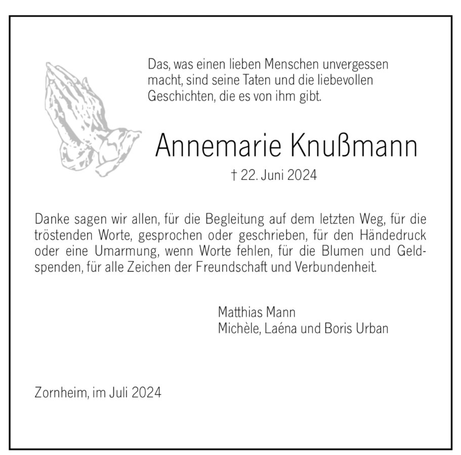 Annemarie Knußmanngestorben am 22. Juni 2024