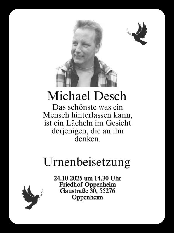 Gute Reise Michael war mir eine Ehre dich kennenzulernen gehabt wir hatten schöne Zeiten auf dem Katzenberg. Grüße mir den Rest da oben . Niemals geht man so ganz du bleibst immer hier. 🙏🙏🙏🌅🌅